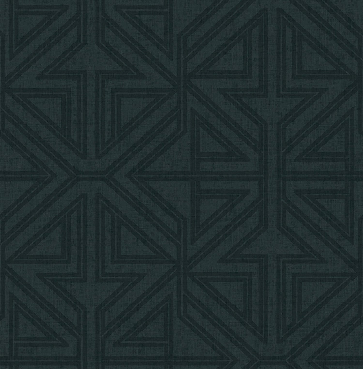 Bring dark glamour to your walls with this bold geometric design. Angular black linework against rich charcoal is both timeless and luxurious. Kachel is an unpasted, non woven wallpaper.