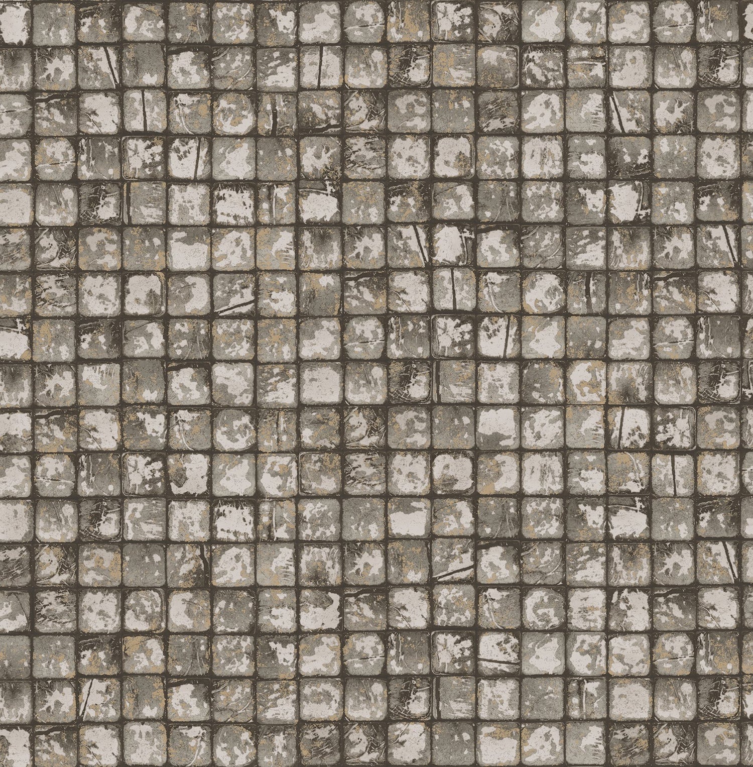 Kingsley Grey Tiled Wallpaper with Metallic Textured Geometric Tiles - Advantage 4125-26756