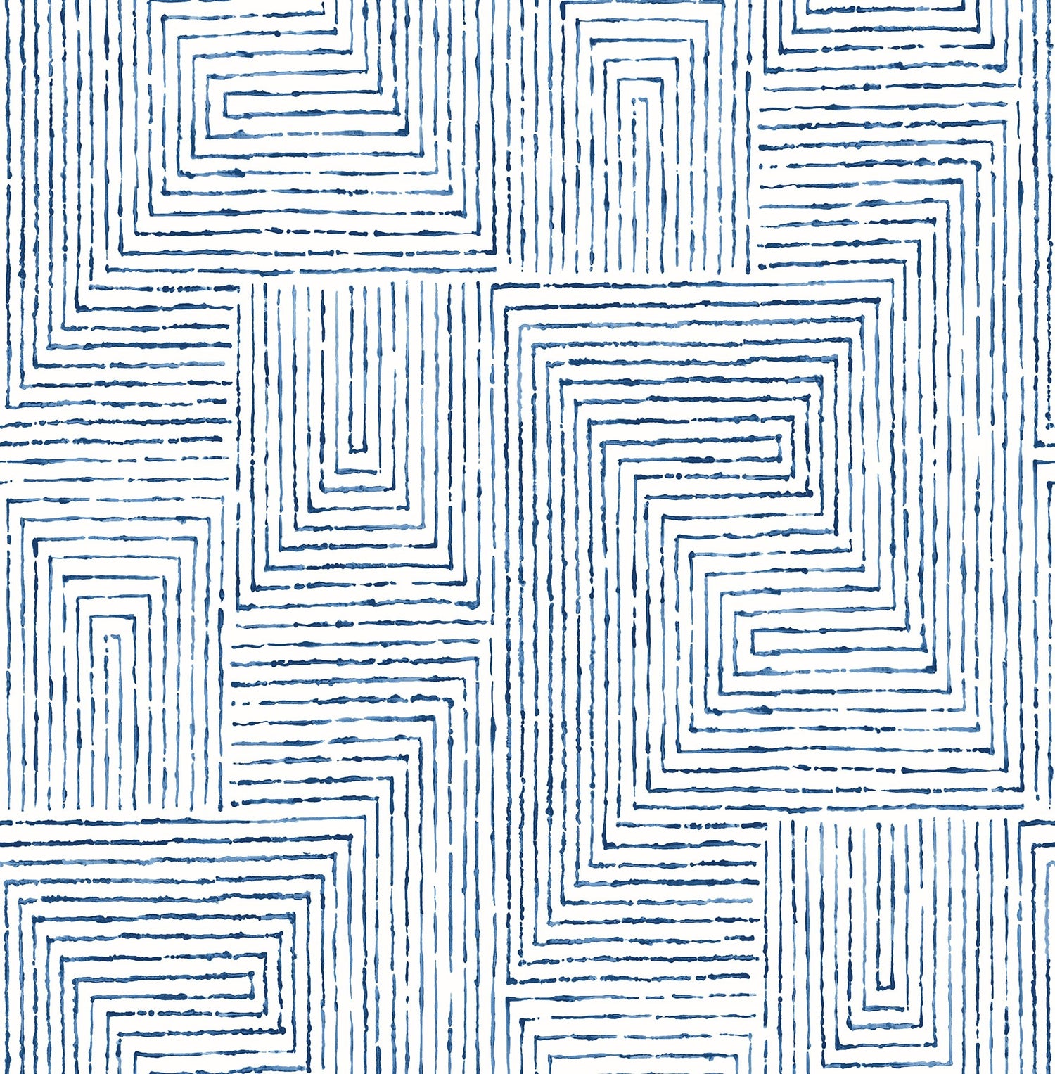 Detailed Name: A-Street Prints Merritt Indigo Geometric Wallpaper, 20.5-in by 33-ft