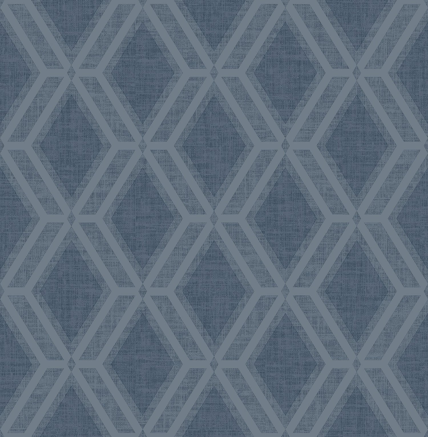 Mersenne Indigo Geometric Wallpaper with Modern Textured Diamond Motif - Advantage 4025-82541