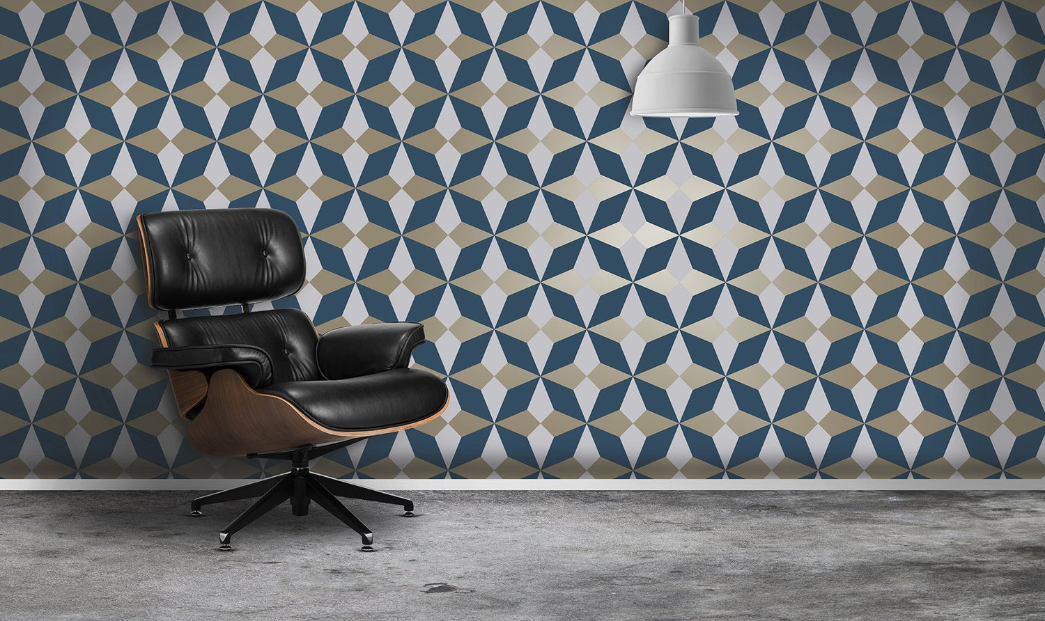 Newby Navy Geometric Wallpaper with Metallic Gold Accents - Fine Decor 2900-42548