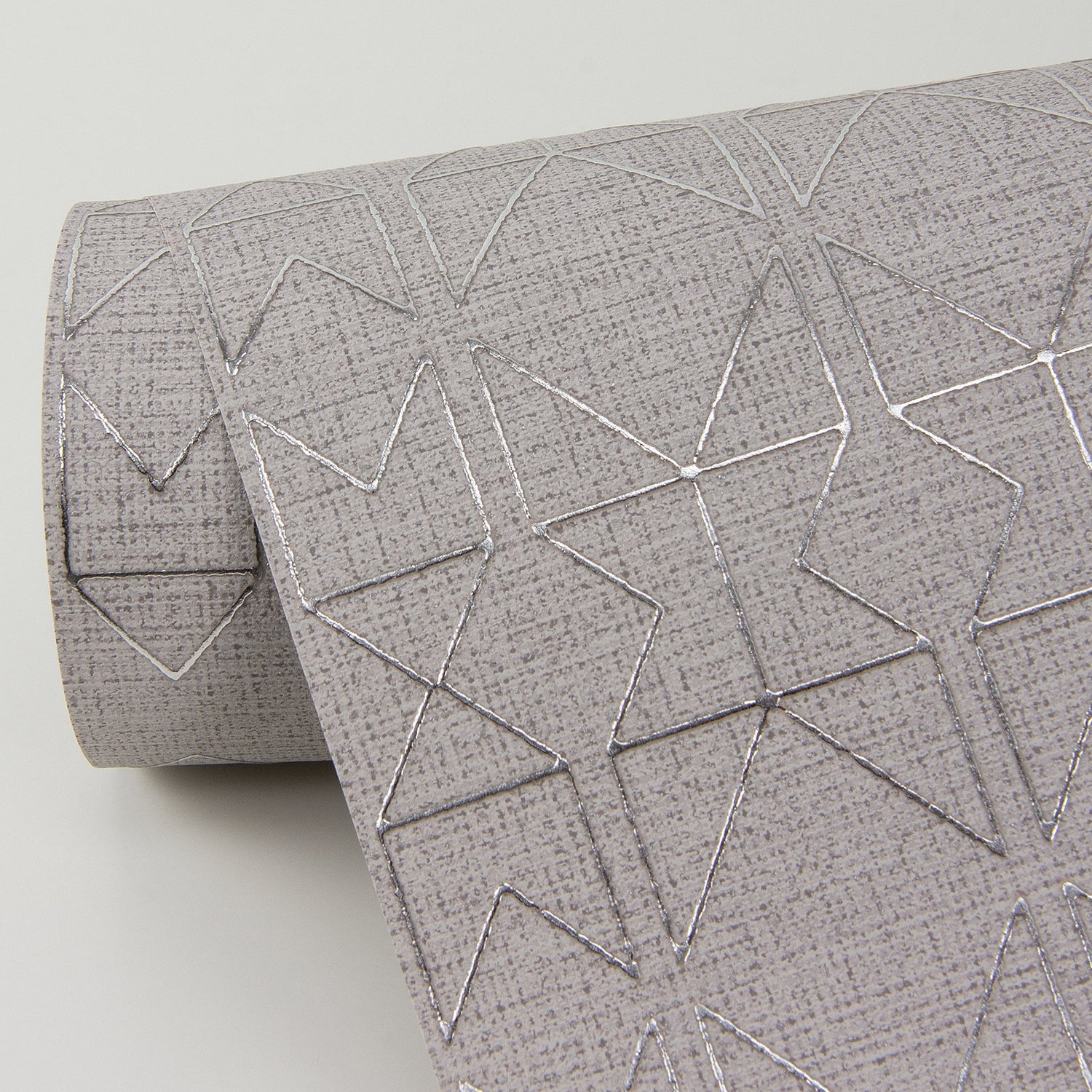 Bring additional brightness to your home with this elevated geometric wallpaper. The taupe faux linen background is overlaid with a delicate diamond web of thin, high-shine silver lines. Paititi is an unpasted, foil on non woven wallpaper.