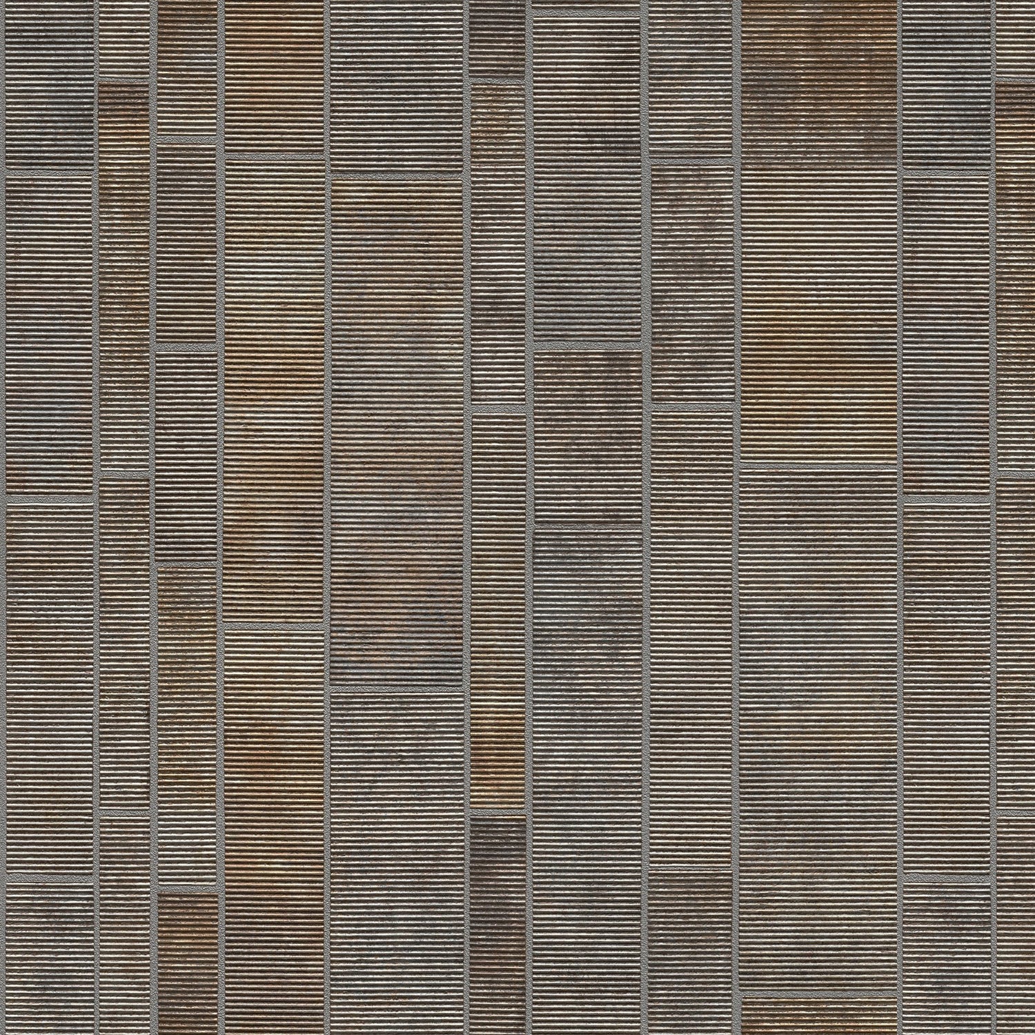 Enjoy chic, industrial flair with this architectural wallpaper. Block of various thickness and size have the look of weathered metal sheets, complete with a tactile ridged finish. Redmond is an unpasted, vinyl on non woven wallpaper.