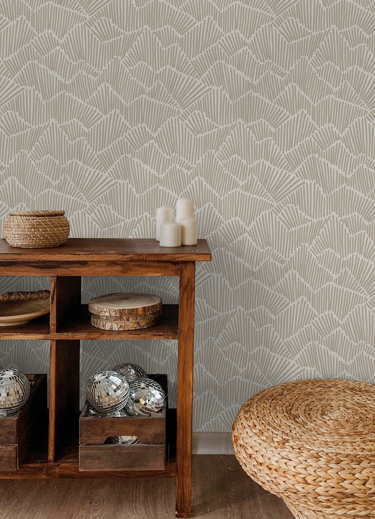Ridge & Valley Beige Peel & Stick Wallpaper with Geometric Abstract Pattern - NuWallpaper ESS6027