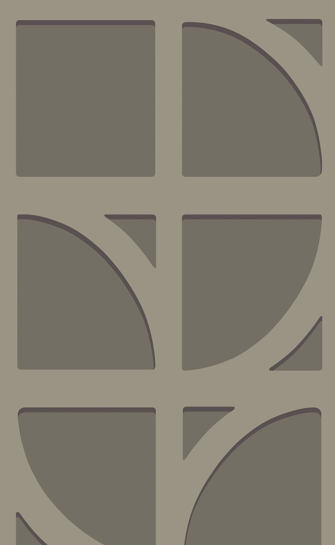 This modern, geometric design features a square trellis with curved accents. The pale grey structure is highlighted with shadowing along its lower edges and sits atop a metallic charcoal background. Shapes is an unpasted, non woven wallpaper.