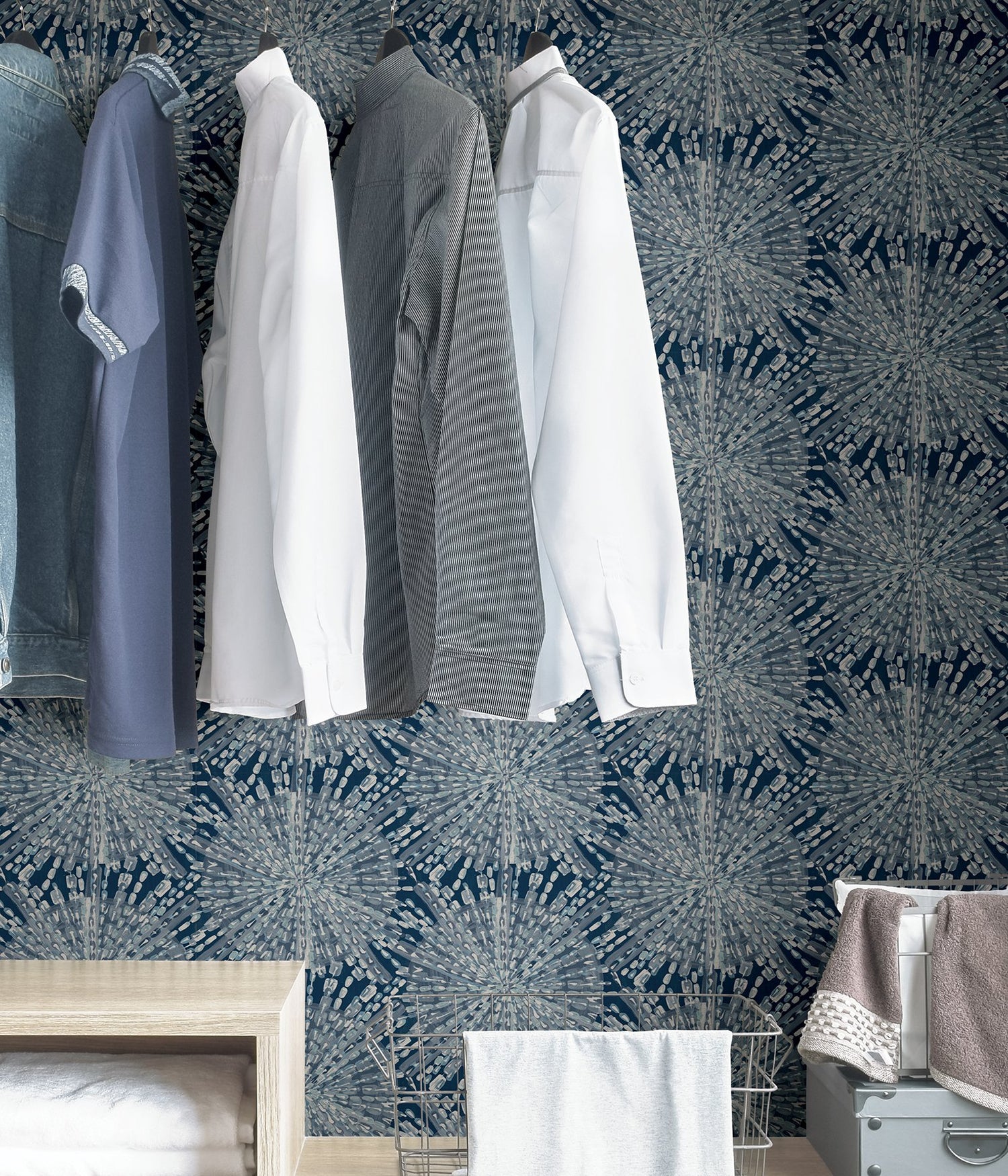 Bursting with dimension and brilliance, this navy sunburst design by Lisa Whittington is full of life. Its metallic details transform your home into a unique sanctuary with a bohemian flair. Navy Sunburst Peel and Stick Wallpaper comes on one roll that measures 20.5 inches wide by 18 feet long.