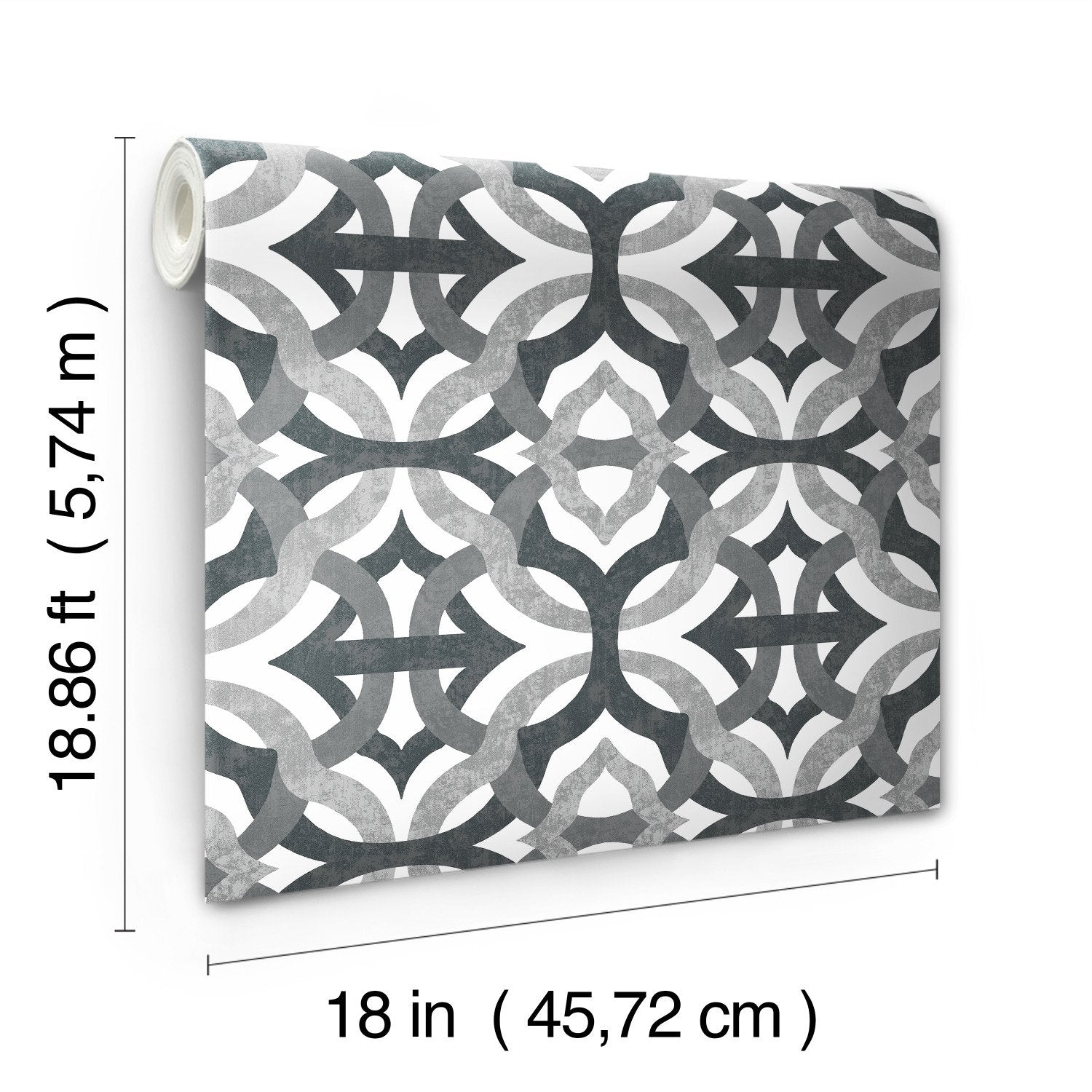 Detailed Name: RoomMates 226.32-in by 18-in Tipton Grey Peel & Stick Wallpaper