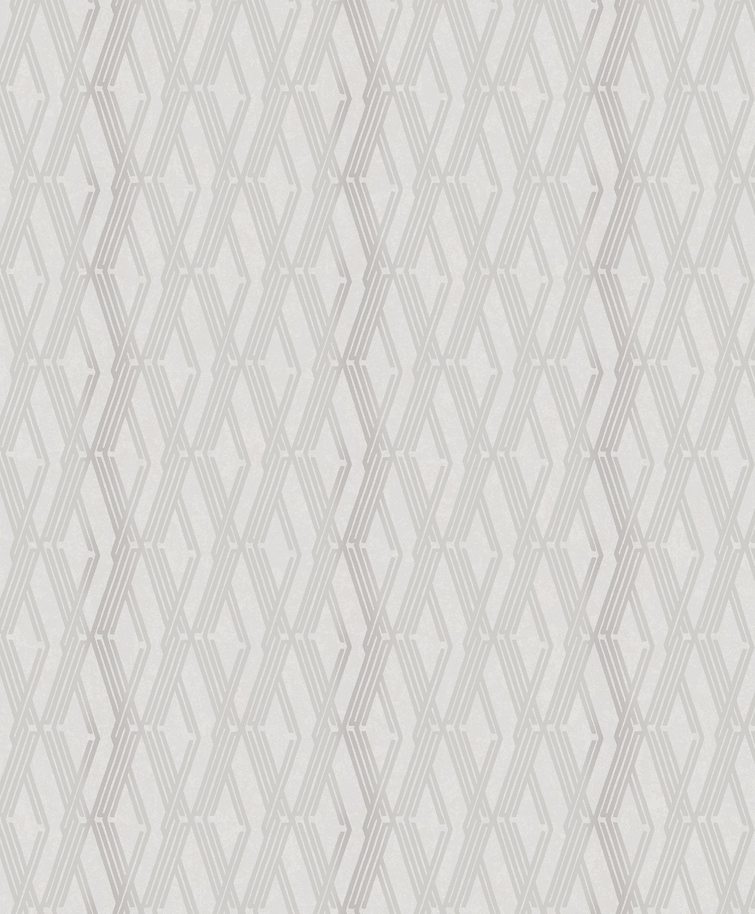The elevated design of this geometric wallpaper will bring chic sophistication to your walls. Thin grey ribbons imbued with flashing silver form diamond chains along a grey backdrop with plaster-like texture. Ushas is an unpasted, non woven wallpaper.