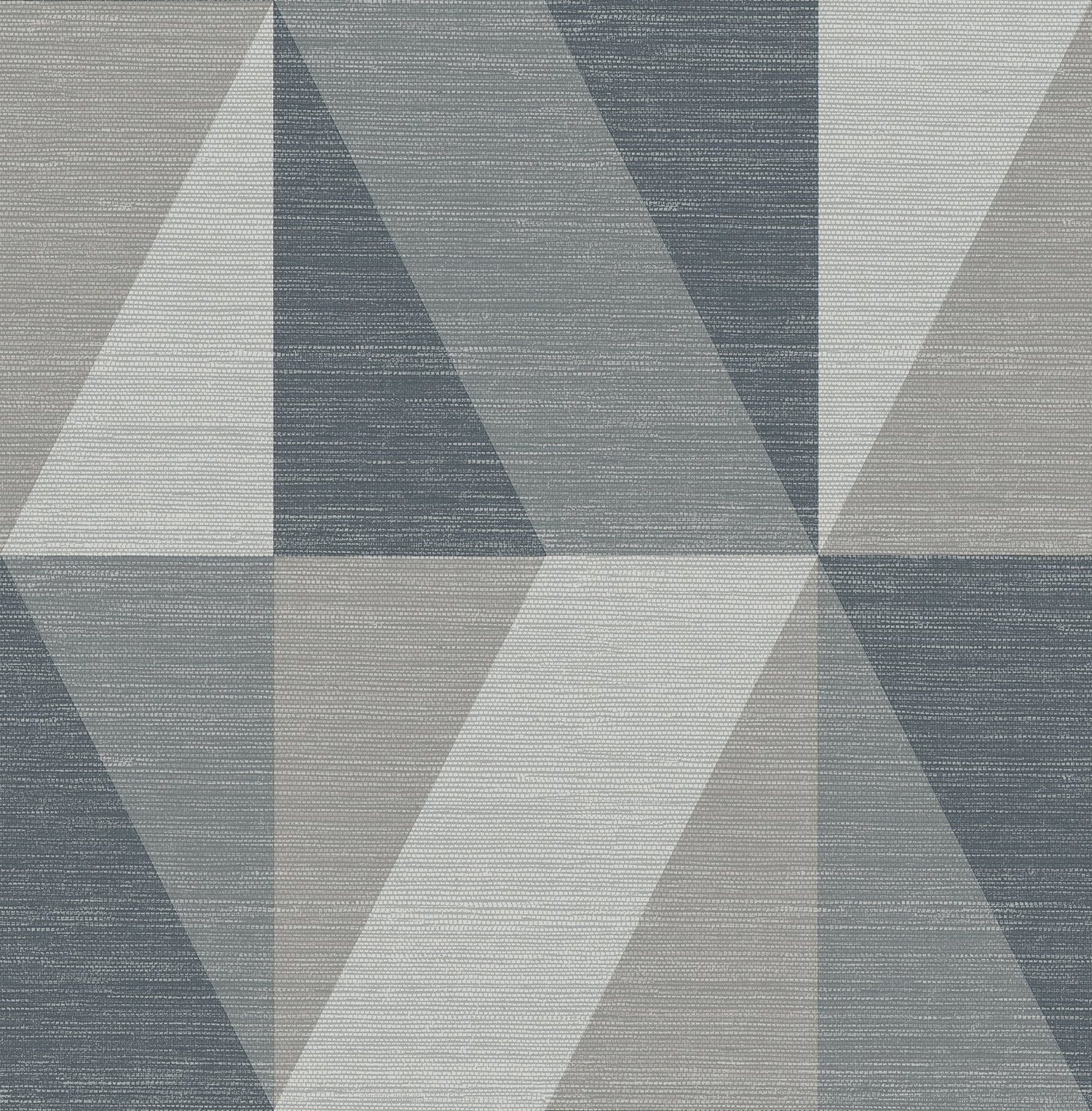 Masculine and timeless, this large-scale geometric wallpaper features angular forms in a range of rich blue and grey hues, all further elevated with a faux grasscloth texture and soft silver pearlescence. Winslow is an unpasted, non woven wallpaper measuring 20.5 inches wide by 33 feet long, covering approximately 56.4 square feet per roll.