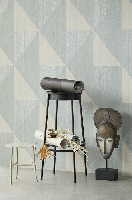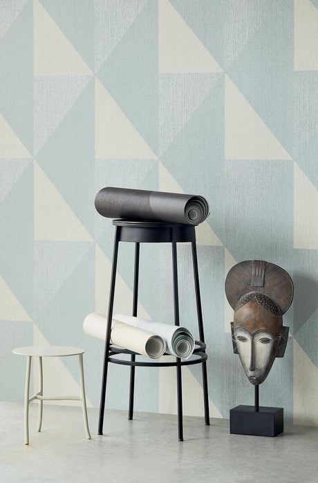 Diamond Light Blue Tri-Tone Geometric Wallpaper