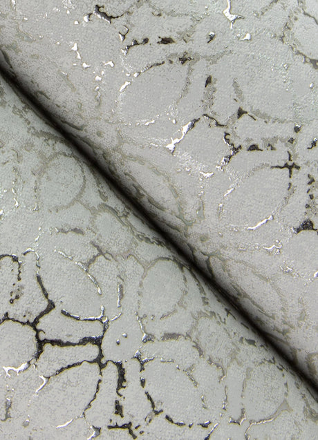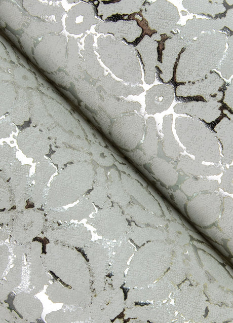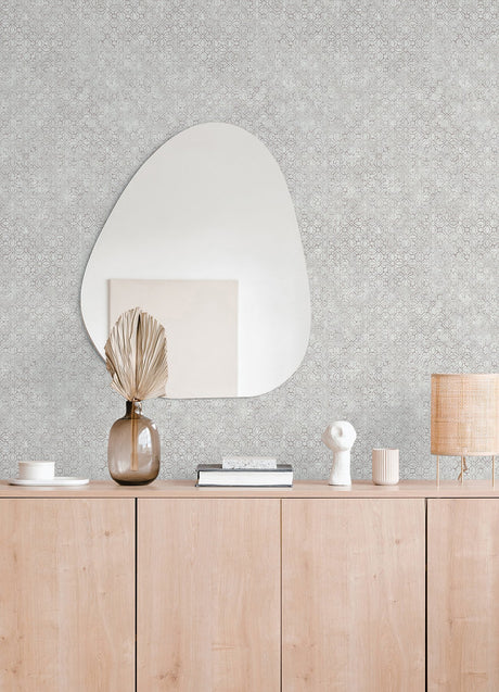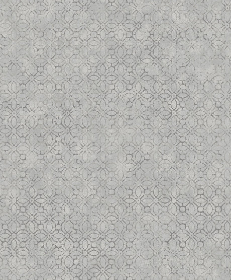 Celeste Silver Geometric Wallpaper with Metallic Textured Grid Circles - Brewster 4019-86409