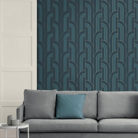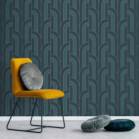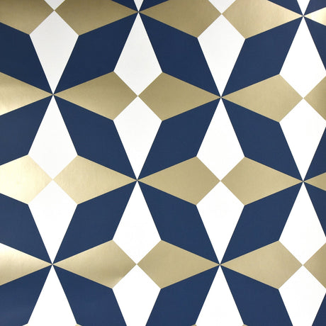 Newby Navy Geometric Wallpaper with Metallic Gold Accents - Fine Decor 2900-42548