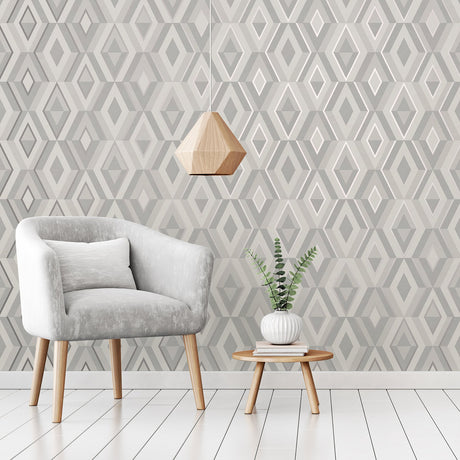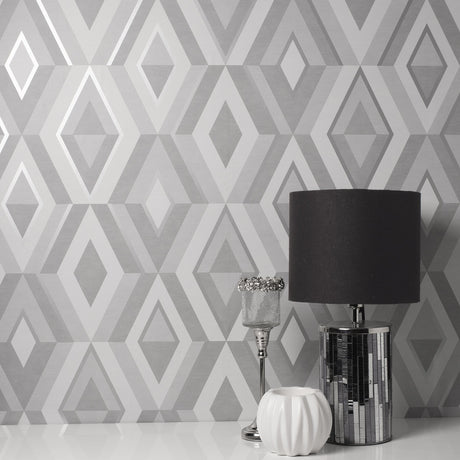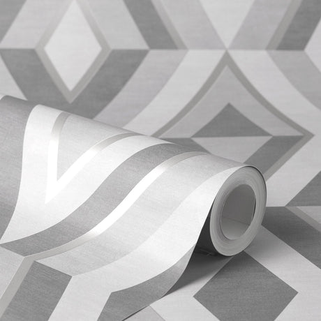 Malcolm Grey Geo Wallpaper with Metallic Textured Geometric Pattern - Fine Decor FD43152