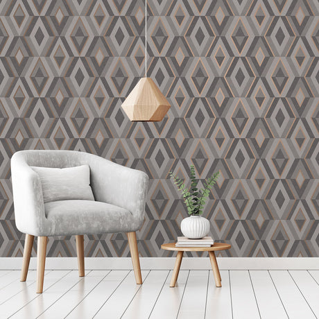 Quartz Copper Fractal Wallpaper with Glam Abstract Geometric Pattern - Fine Decor FD42283