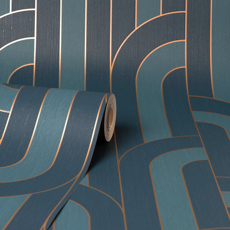 Malcolm Teal Geo Wallpaper with Metallic Textured Geometric Pattern - Fine Decor FD43154