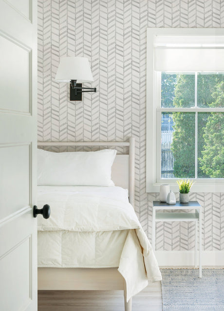 Fletching Grey Geometric Wallpaper with Watercolor Chevron Motif - Chesapeake 3124-13922