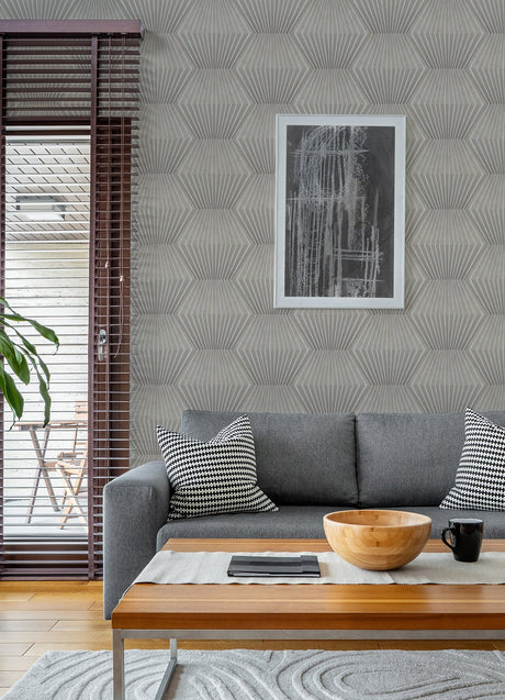 Lehnmann Taupe Geo Wallpaper with Metallic Textured Honeycomb Geometric - Advantage 4082-382043