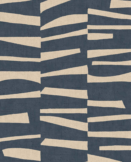 Ode Dark Blue Staggered Stripes Wallpaper with Modern Geometric Graphics - Eijffinger EJ318022