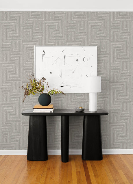 Mortenson Light Grey Geometric Cork Wallpaper with Modern Graphics Pattern - Brewster 4034-72141