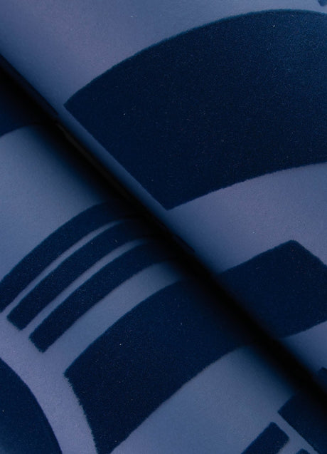 Carter Indigo Geometric Flock Wallpaper with Modern Graphics Pattern - Brewster 4034-87381
