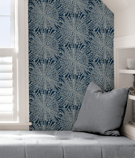 Sunburst Navy Peel & Stick Wallpaper with Metallic Geometric Bohemian Pattern - NuWallpaper LLS4116