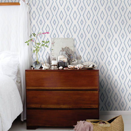 Santa Cruz Blue Geometric Wallpaper with Modern Abstract Diamond Pattern - Chesapeake 3120-13664