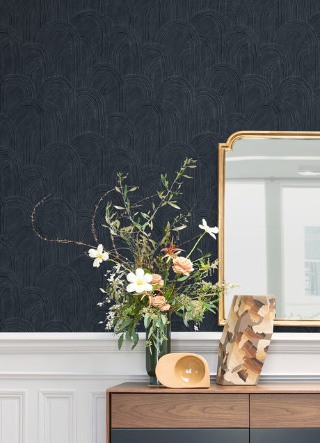 Cabo Indigo Rippled Arches Wallpaper with Modern Geometric Pattern - A-Street Prints AST4685