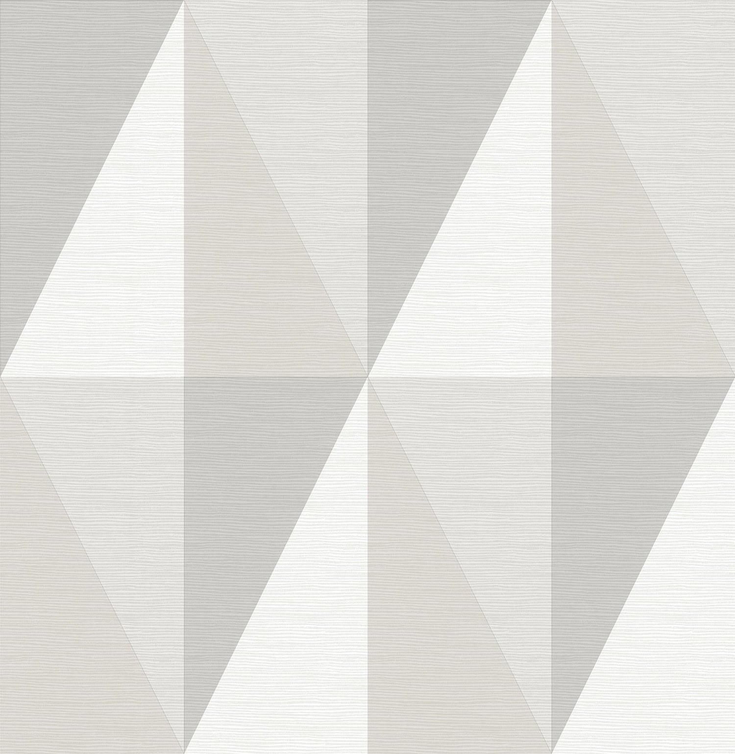 A traditional faux grasscloth with a contemporary twist, this wallpaper features diamond design. Its grey and silver geometric print is accented by raised inks and mica details. Aspect is an unpasted, non woven wallpaper.