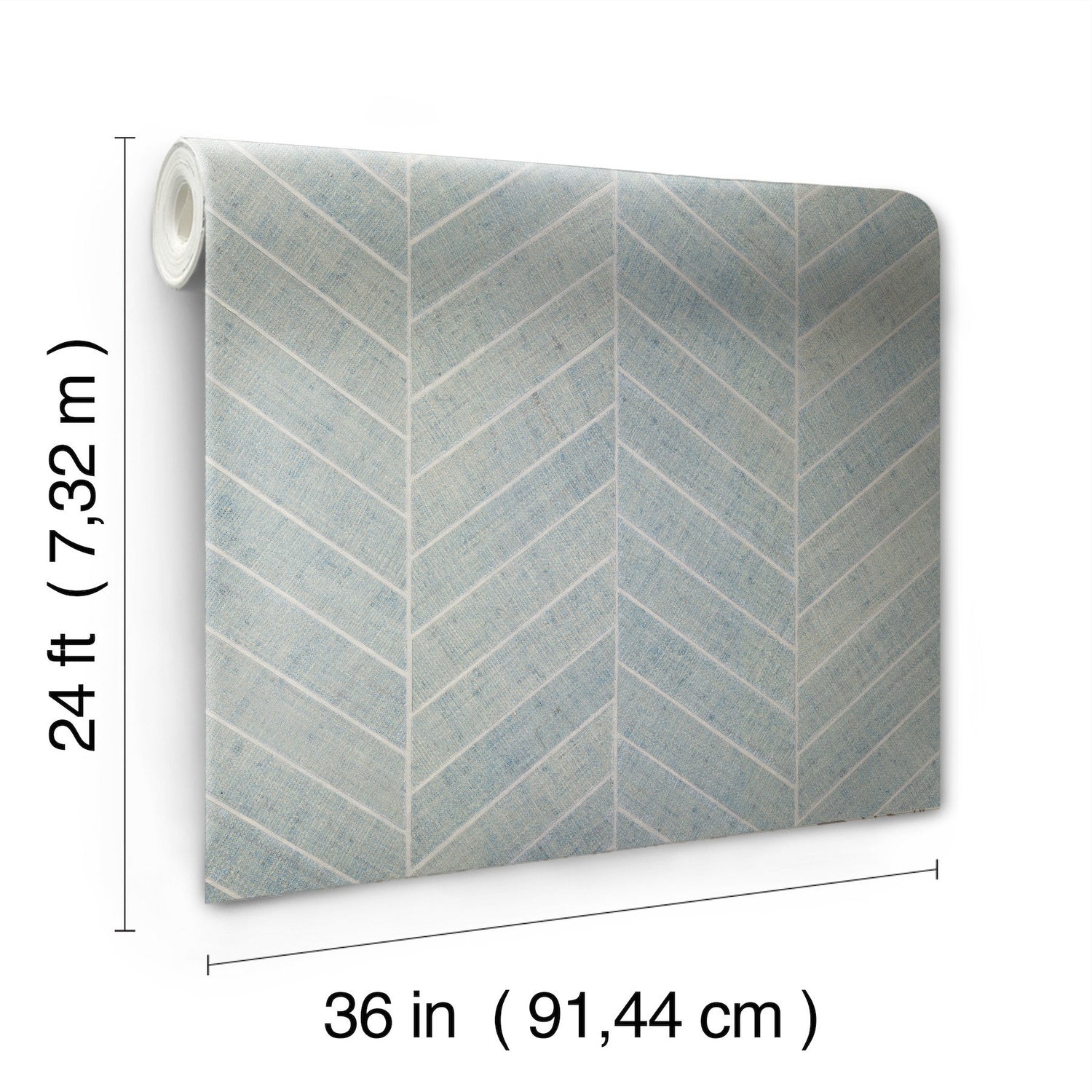 Detailed Name: Ronald Redding Atelier Herringbone Lagoon Wallpaper, 36-in by 24-ft