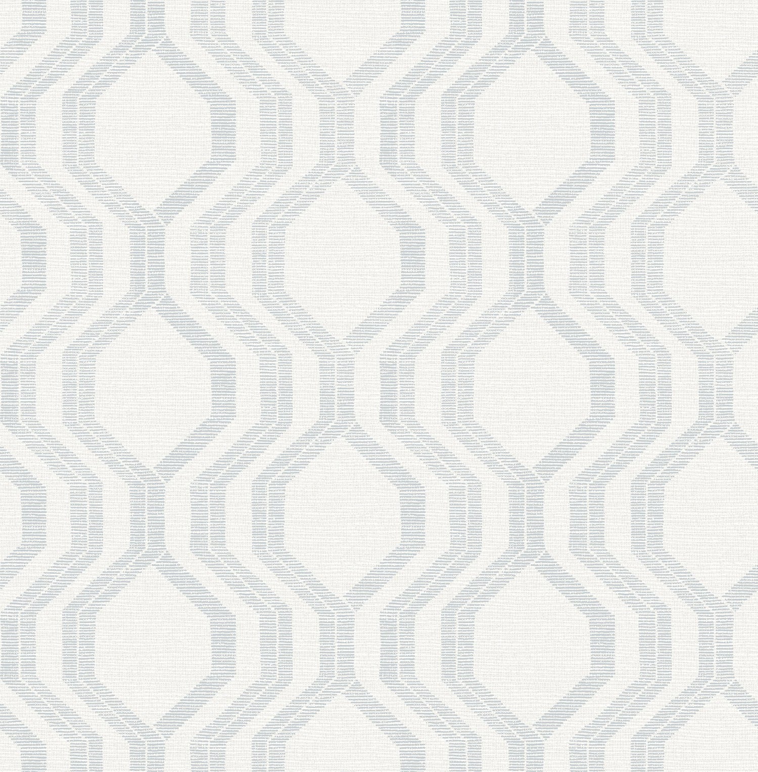 This modern update to classic ogee styling features hexagonal detailing, faux grasscloth texture, and two-tone grey coloring elevated by a metallic silver sheen. Burton is an unpasted, non woven wallpaper measuring 20.5 inches wide by 33 feet long, covering approximately 56.4 square feet per roll.