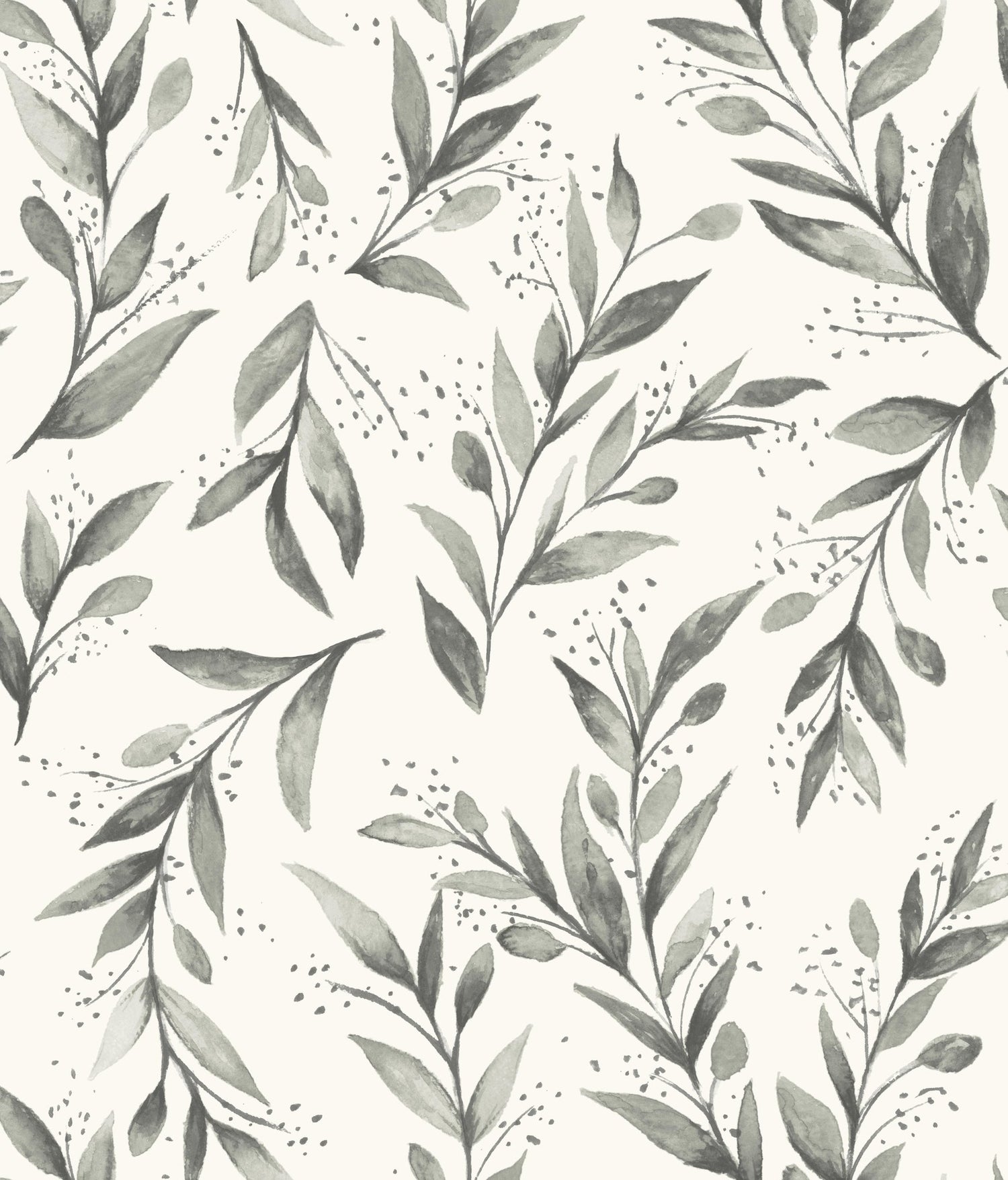 Olive Branch Charcoal Peel & Stick Non Woven Wallpaper with Botanical Olive Motif - York PSW1003RL - Roll is backordered and will ship as soon as it is back in stock.