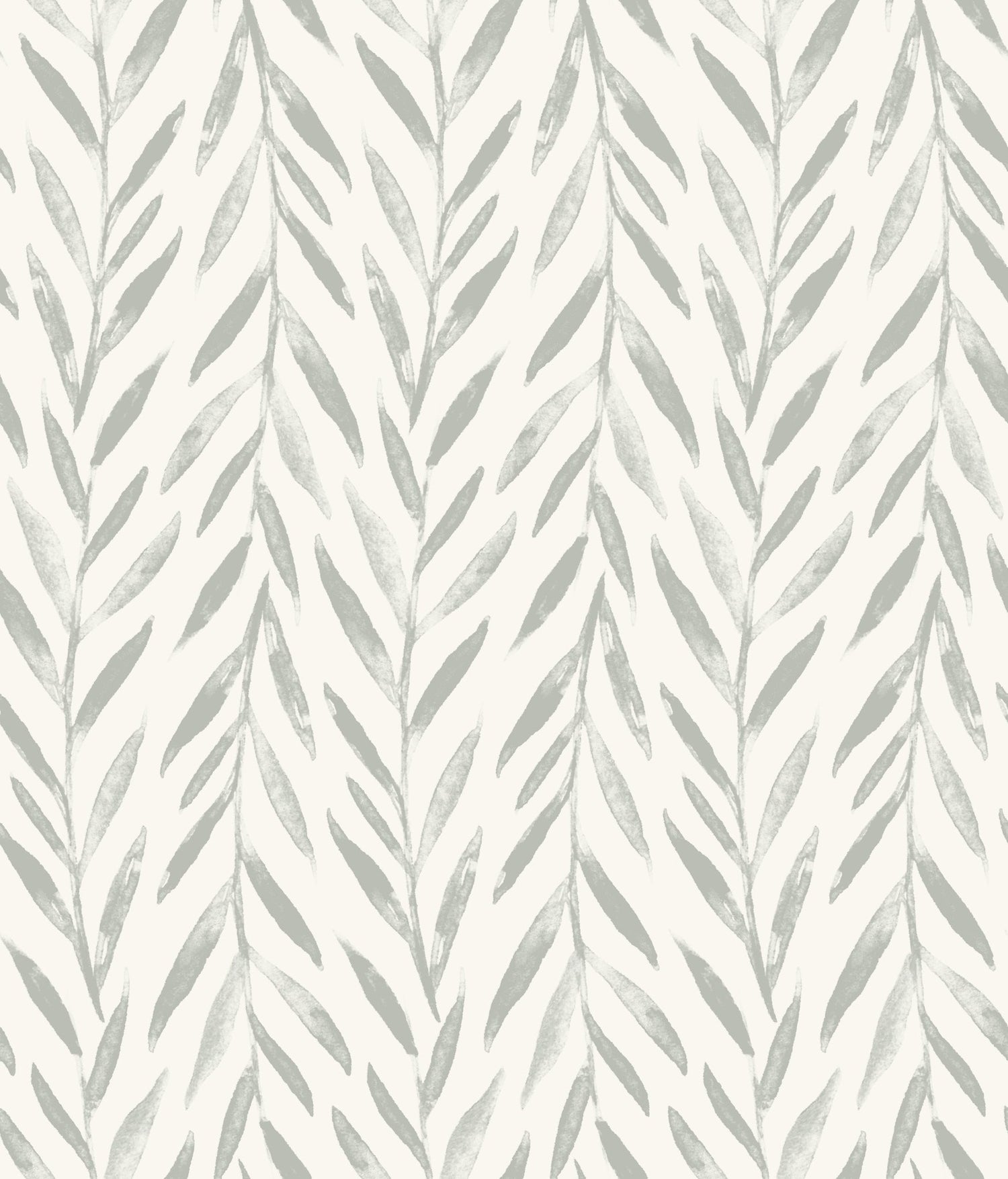 Magnolia Home Willow Grey Peel & Stick Wallpaper with Botanical Watercolor Leaf Stripe - York PSW1018RL