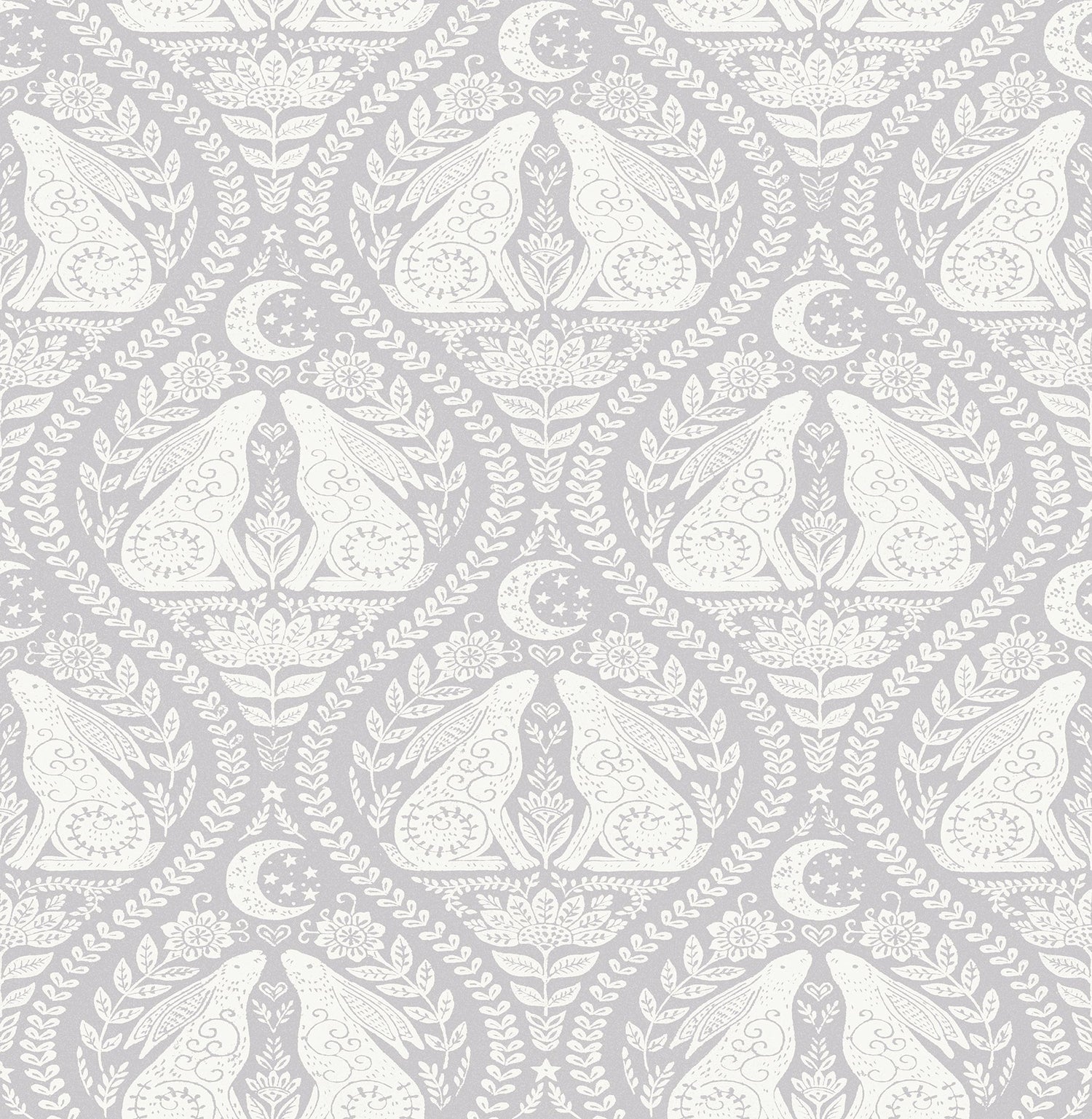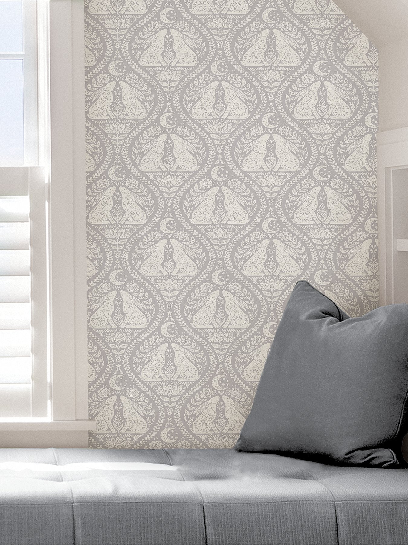 Moon Rabbit Grey Peel & Stick Wallpaper