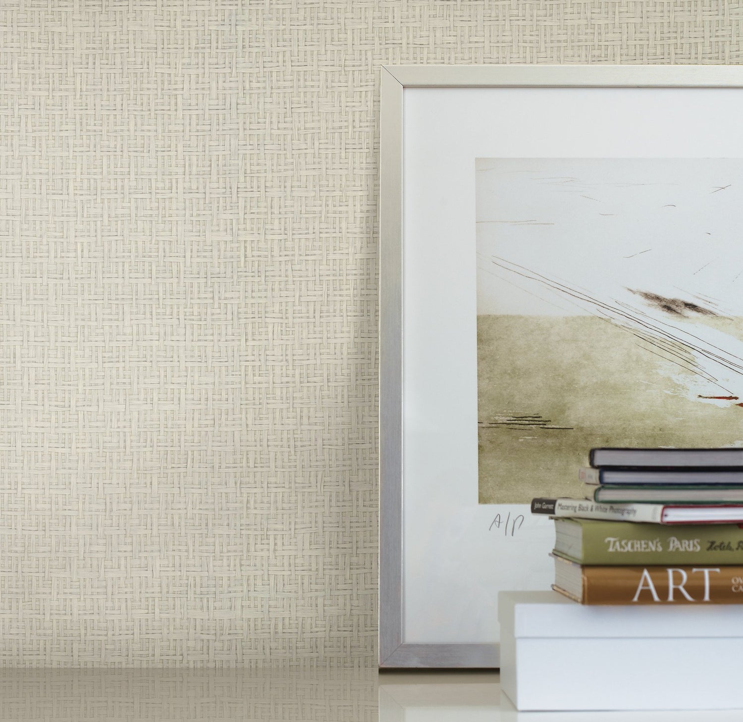 Detailed Name: Candice Olson Tatami Weave Light Grey Wallpaper, 36-in by 24-ft