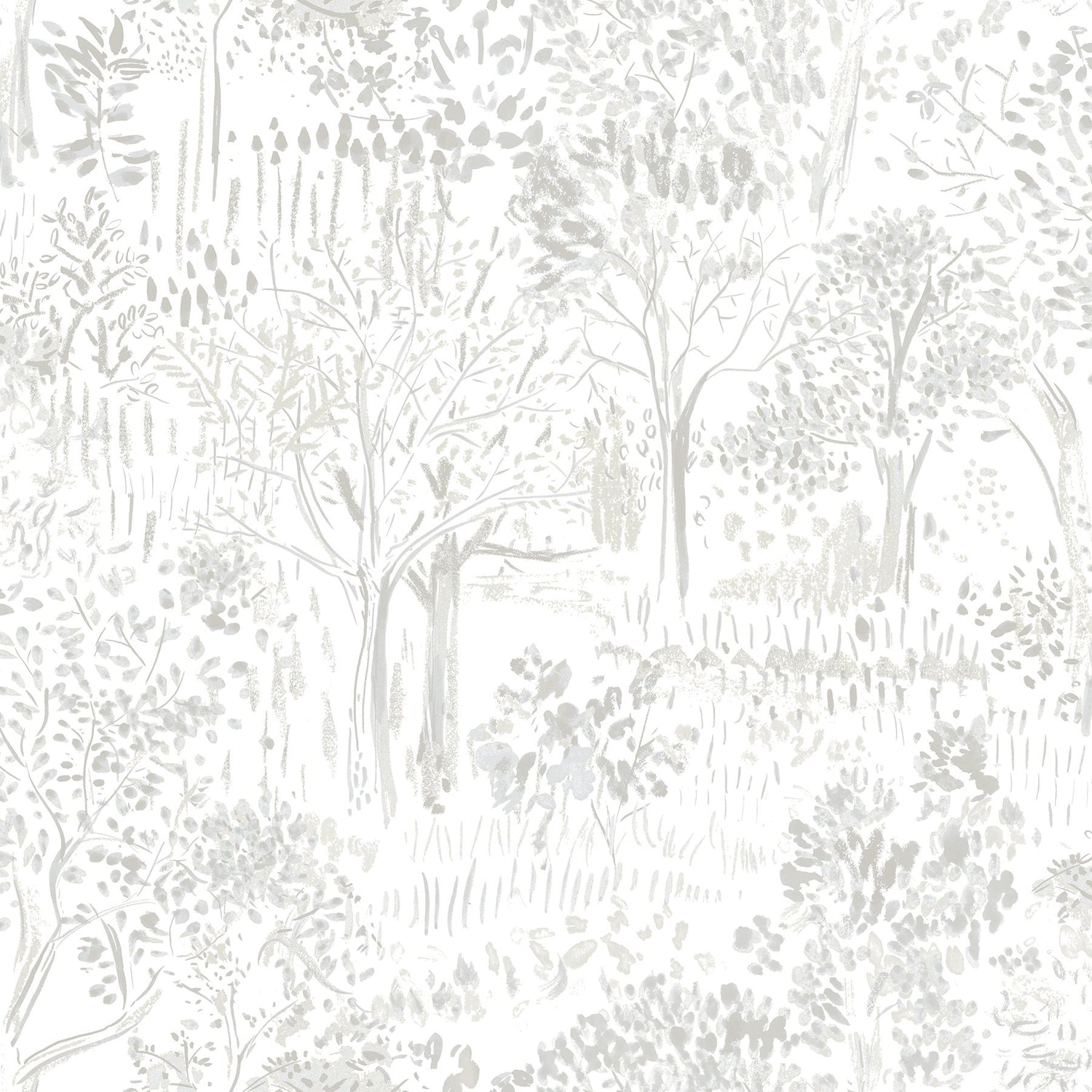 Walden Grey Forest Wallpaper with Modern Botanical Trees Pattern - Chesapeake 3124-13892