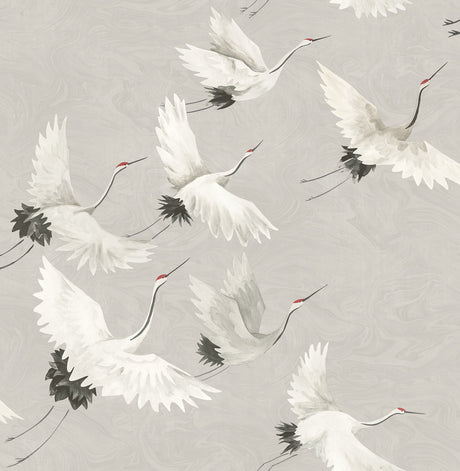 Windsong Grey Crane Wallpaper with Hand-Painted Bird Motif - A-Street Prints 2764-24304