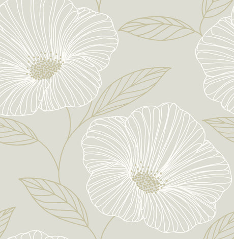 Mythic Grey Floral Wallpaper with Large-Scale Modern Flower Pattern - A-Street Prints 2764-24319