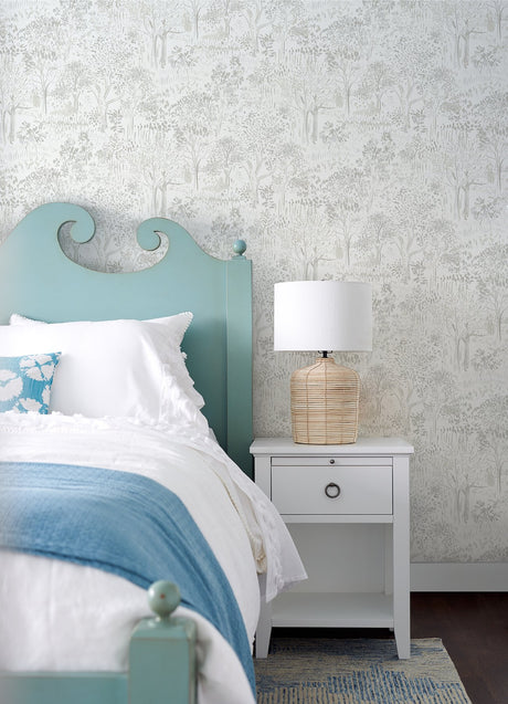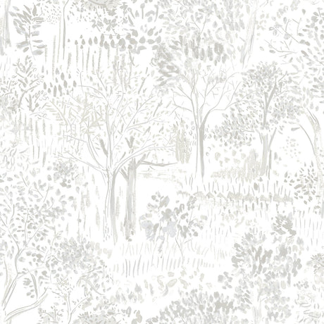 Walden Grey Forest Wallpaper with Modern Botanical Trees Pattern - Chesapeake 3124-13892