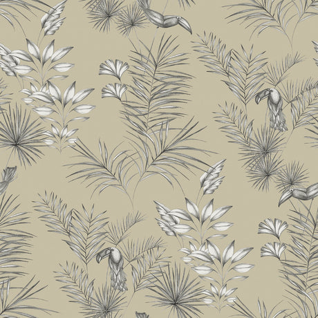 Shelly Grey Toucan Toile Wallpaper with Botanical Tropical Toile Pattern - Brewster WLD53112W