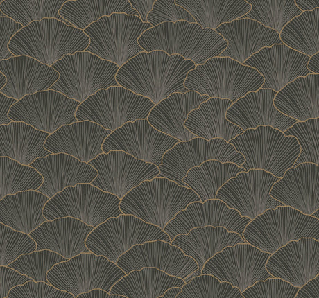 Luminous Gingko Grey Wallpaper with Metallic Fan-Leaf Botanical Motif - York CI2336