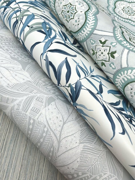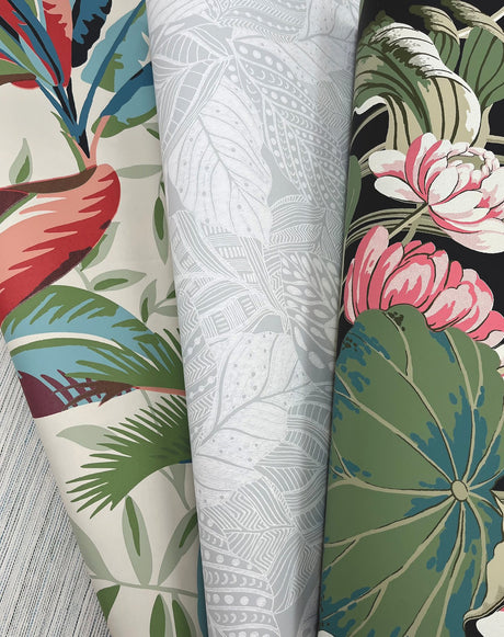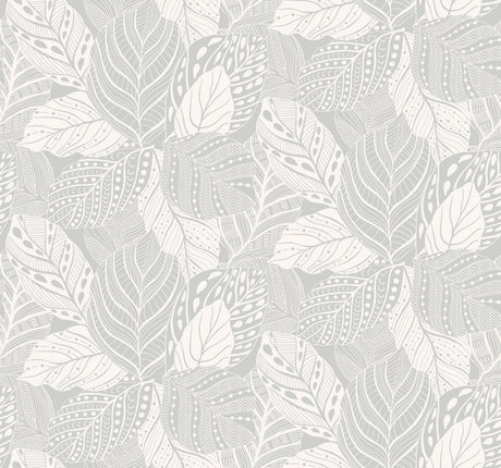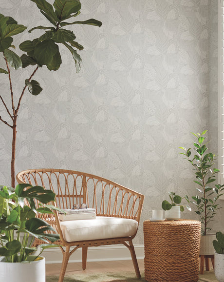 Pandora Leaf Grey Wallpaper with Striped Palm Leaf Motif - York GO8264