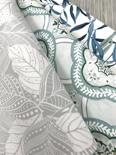 Sevilla Grey Geometric Ogee Leaf Prepasted Wallpaper - York GO8272