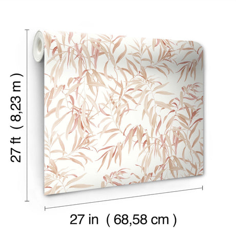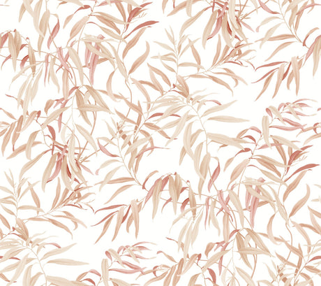 Willow Grove Clay Wallpaper with Botanical Willow Leaf Pattern Prepasted Sure Strip - York GO8244