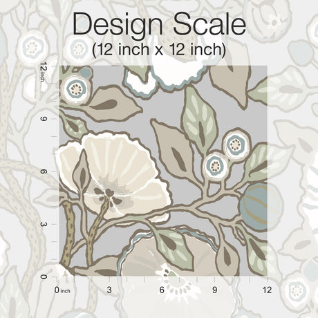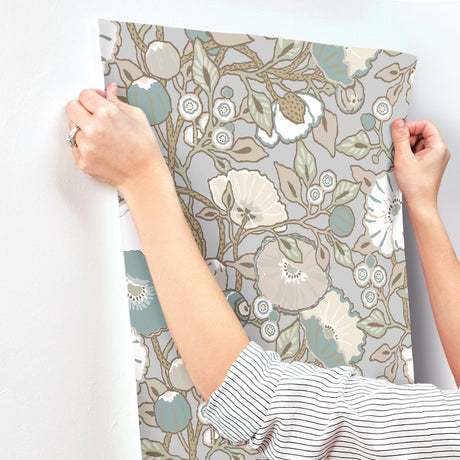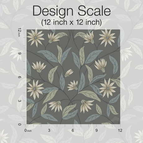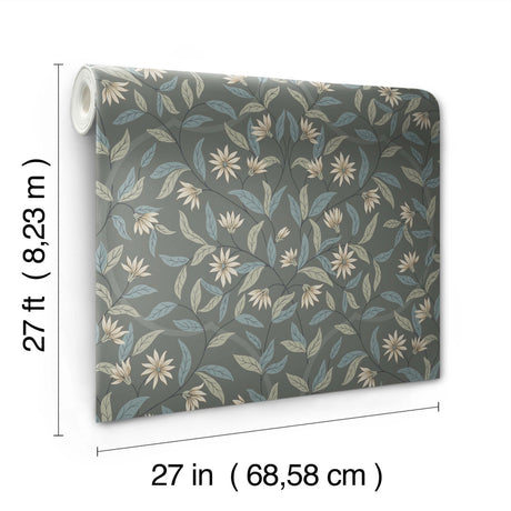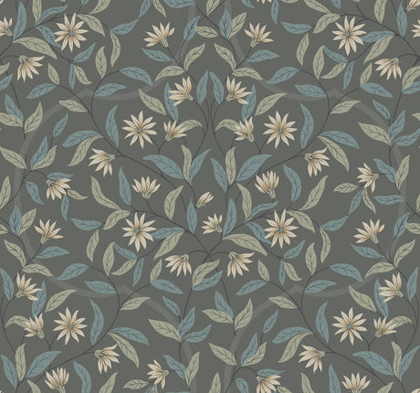Jasmine Charcoal Floral Sure Strip Prepasted Wallpaper - York GO8256