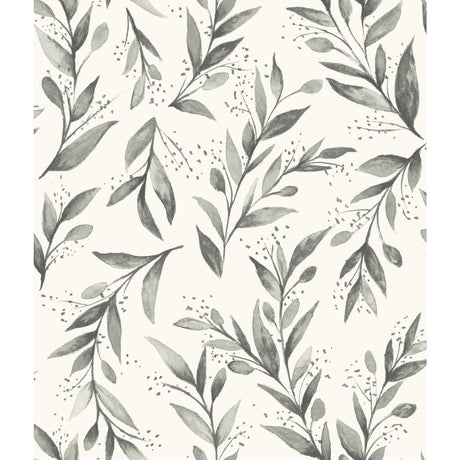 Olive Branch Charcoal Wallpaper with Botanical Olive Leaf Pattern - York ME1537