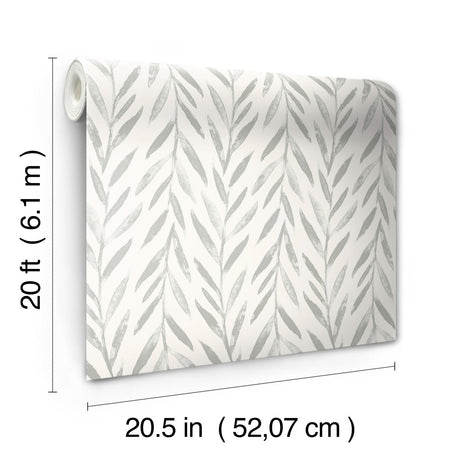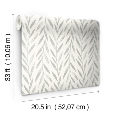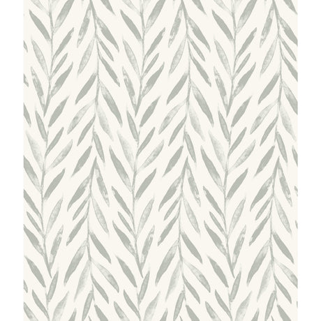 Willow Grey Wallpaper with Botanical Watercolor Willow Stripe - York MK1137