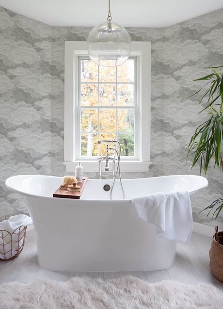 Vision Grey Stipple Clouds Wallpaper with Graphic Cloud Motif - A-Street Prints 4122-72406