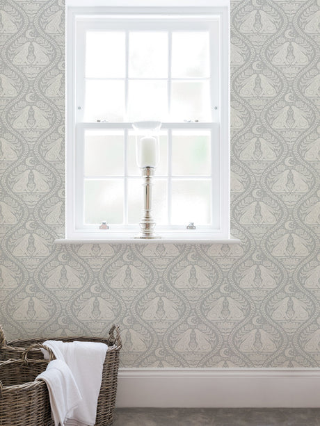 Angelica Grey Peel & Stick Wallpaper with Modern Floral Motif - NuWallpaper NU1693
