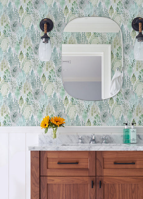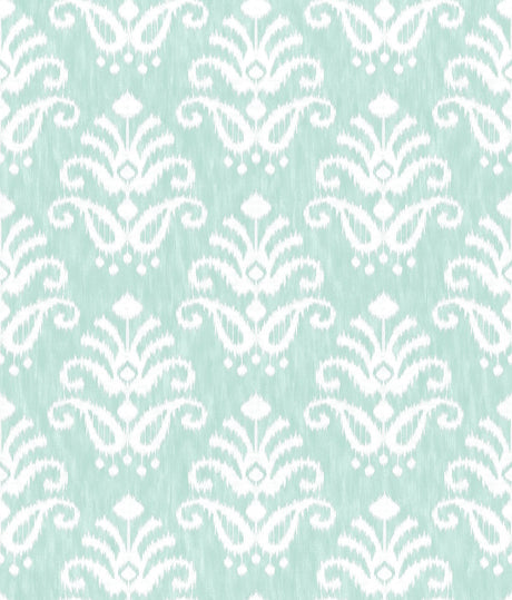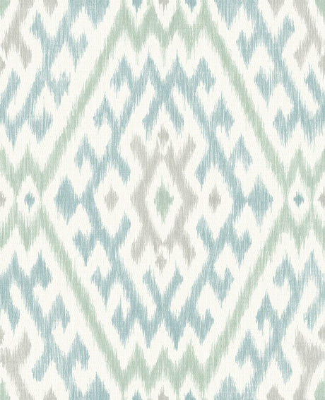 Keaton Aqua Medallion Wallpaper with White Ikat Graphic Motif - A-Street Prints 4081-26327