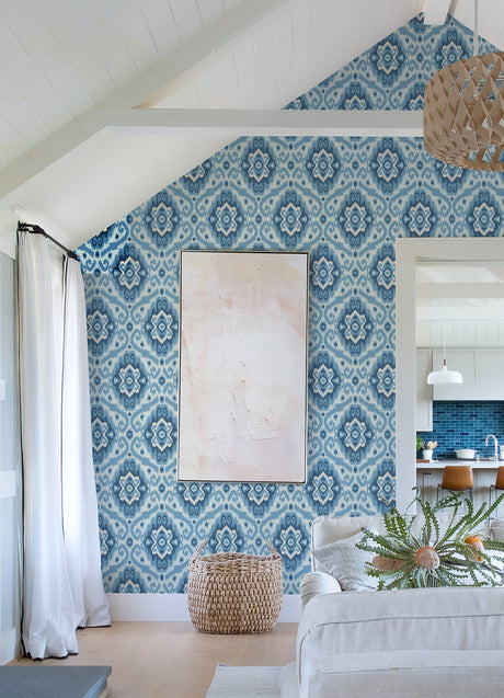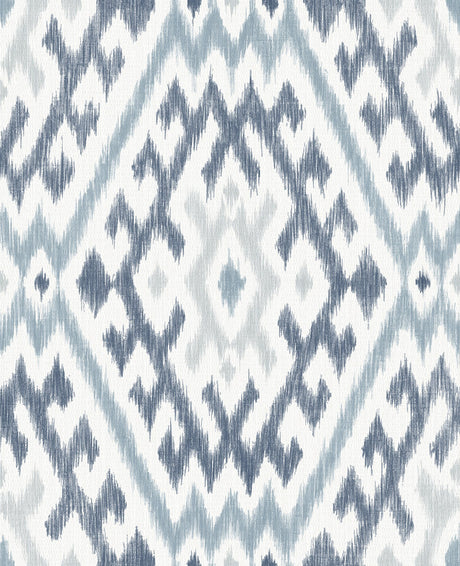 Bohemian Ikat Blue Peel & Stick Wallpaper with Abstract Ikat Motif - York RMK12253PLW